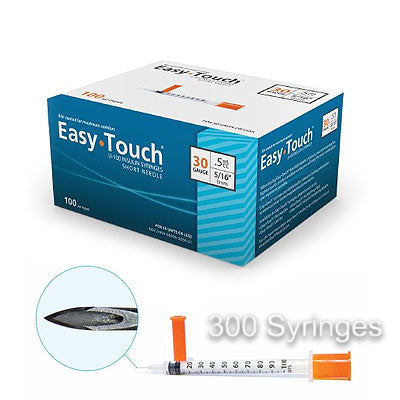 3 Boxes | 300 Syringes - EasyTouch 1/2cc 30G x 5/16"