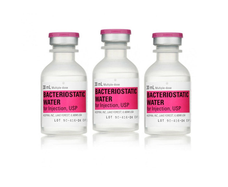 Bacteriostatic Water for Injection, USP is: chemically designated H2O and is a sterile, non-pyrogenic preparation of water containing 0.9% (9mg/mL) of benzyl alcohol added as a preservative and has a pH of 5.7 (4.5 to 7.0).