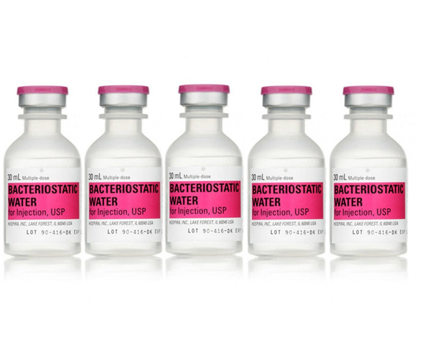 Bacteriostatic Water for Injection, USP is: chemically designated H2O and is a sterile, non-pyrogenic preparation of water containing 0.9% (9mg/mL) of benzyl alcohol added as a preservative and has a pH of 5.7 (4.5 - 7.0).