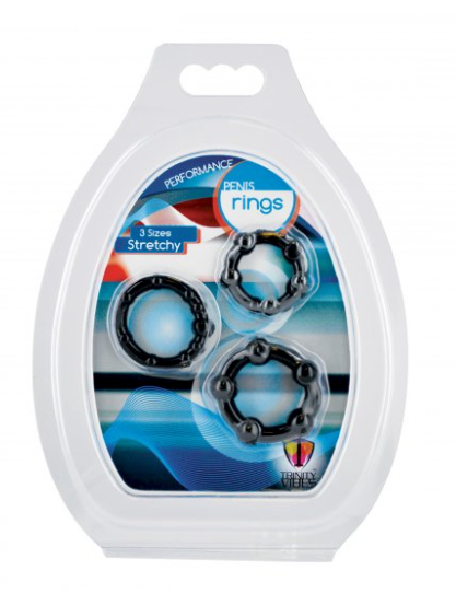 Show your partner how hard you can be and how long you can go with these erection rings. Unlike most cock rings, they are able to stretch out and fit just about any sized man for a more comfortable fit. Not to mention making it easier to put them on and take off. Each ring has a unique set of bumps for added stimulation while wearing. Each set includes three penis rings, each a different size and pattern.